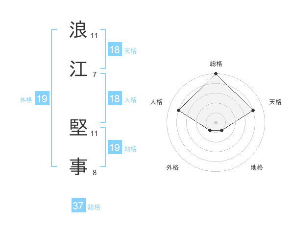浪江 堅事さんを姓名の画数から五運を鑑定