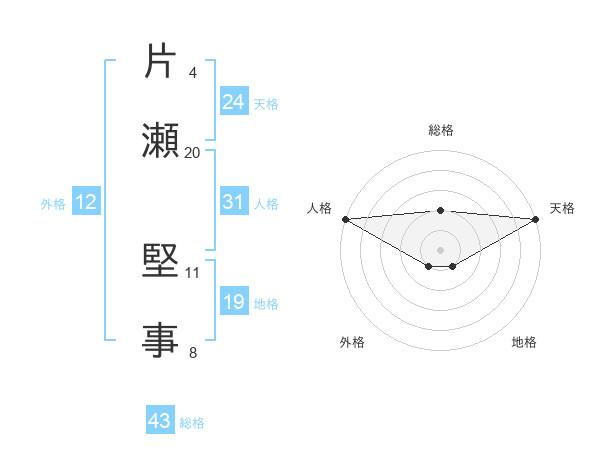 片瀬 堅事さんの天格は24画の5点!