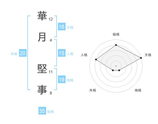華月 堅事さんの総格は35画の4点!