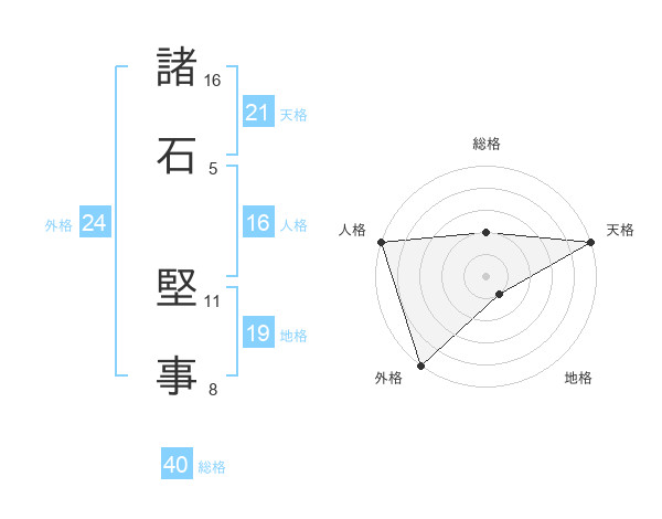 諸石 堅事さんの天格は21画の5点!