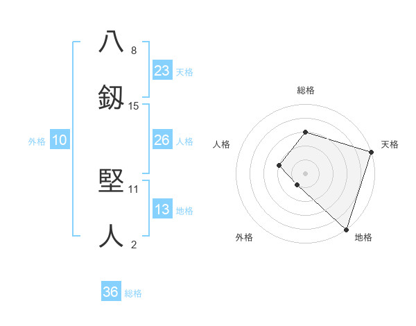 八釼 堅人さんの天格は23画の5点!