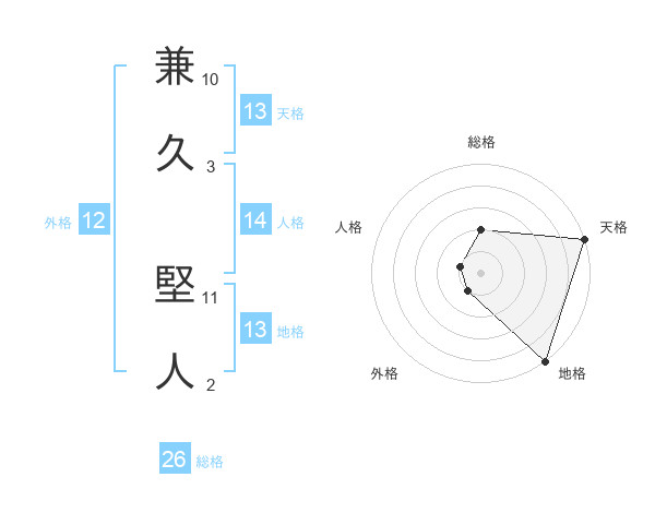 兼久 堅人さんを姓名の画数から五運を鑑定