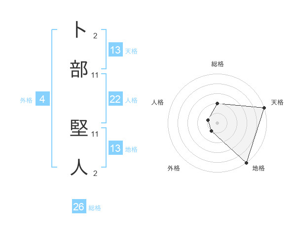 卜部 堅人さんの総格は26画の2点!