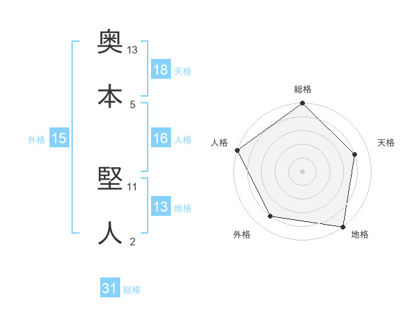 奥本 堅人さんを姓名の画数から五運を鑑定