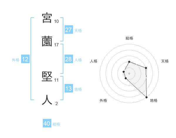 宮薗 堅人さんを姓名の画数から五運を鑑定