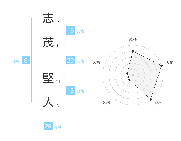 志茂 堅人さんの総格は29画の4点!