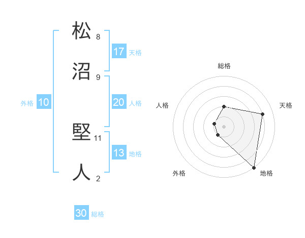 松沼 堅人さんの総格は30画の2点!