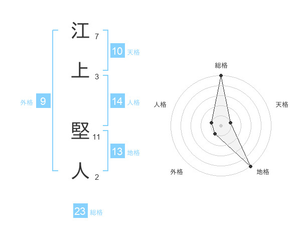 江上 堅人さんの総格は23画の5点!
