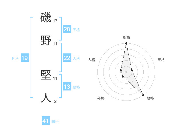 磯野 堅人さんを姓名の画数から五運を鑑定