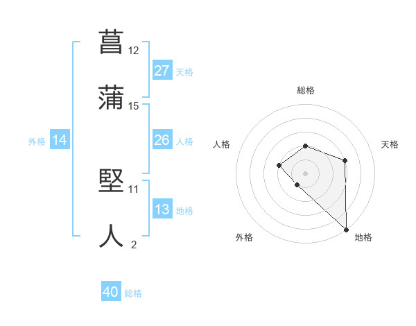 菖蒲 堅人さんの天格は27画の3点!
