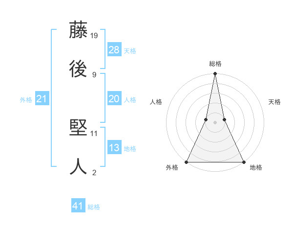 藤後 堅人さんを姓名の画数から五運を鑑定
