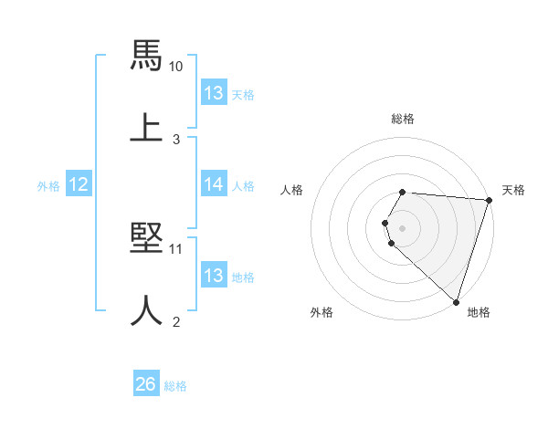 馬上 堅人さんを姓名の画数から五運を鑑定