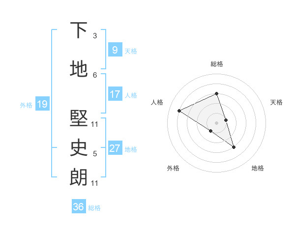 下地 堅史朗さんの地格は27画の3点!