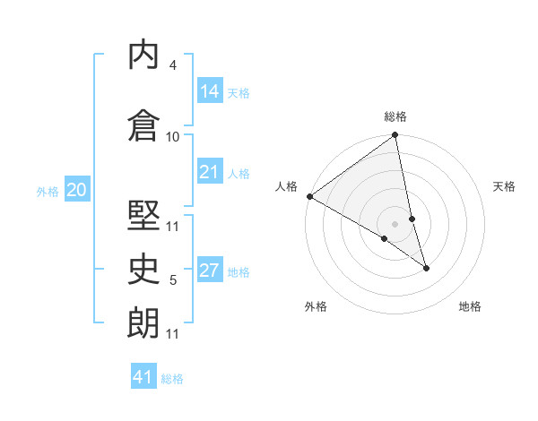 内倉 堅史朗さんの総格は41画の5点!