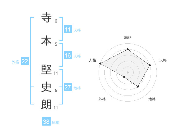 寺本 堅史朗さんを姓名の画数から五運を鑑定