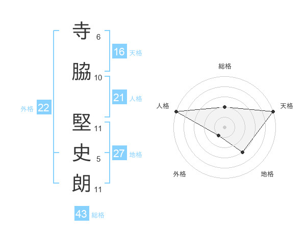 寺脇 堅史朗さんを姓名の画数から五運を鑑定