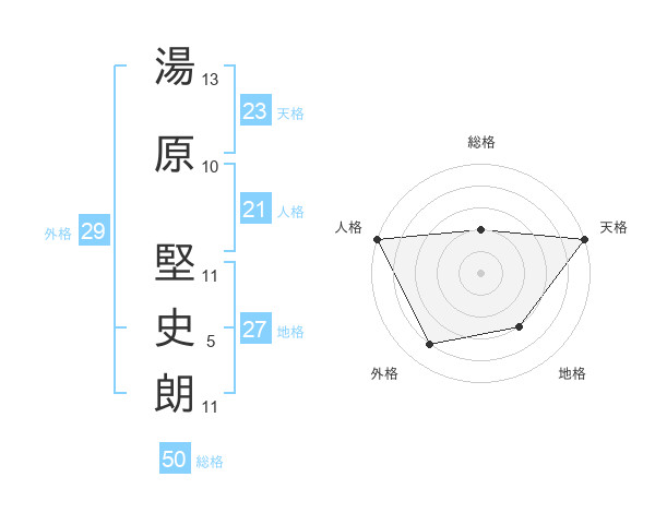 湯原 堅史朗さんを姓名の画数から五運を鑑定