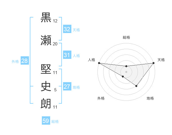 黒瀬 堅史朗さんの天格は32画の5点!