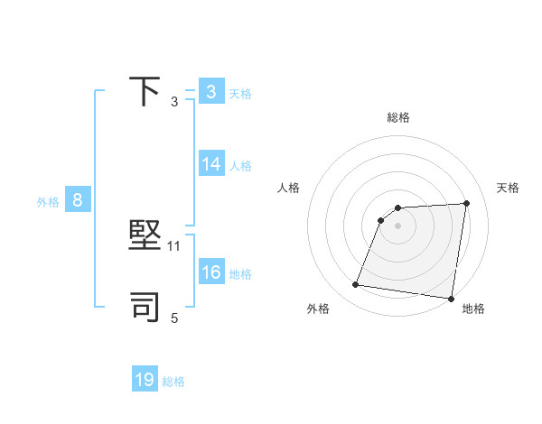 下 堅司さんの総格は19画の1点!