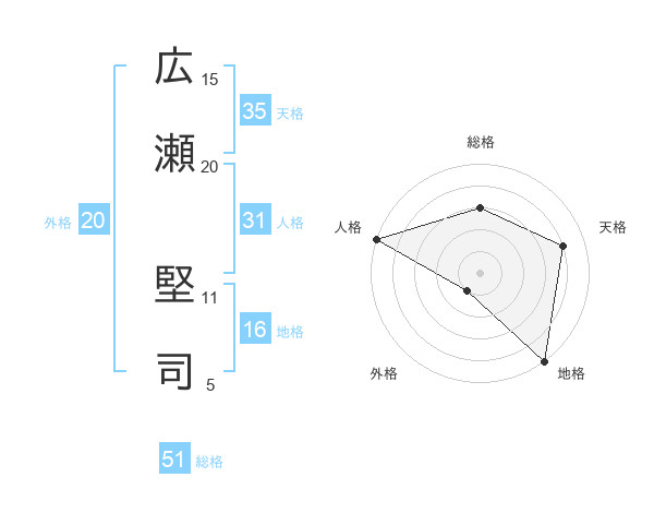 広瀬 堅司さんの総格は51画の3点!