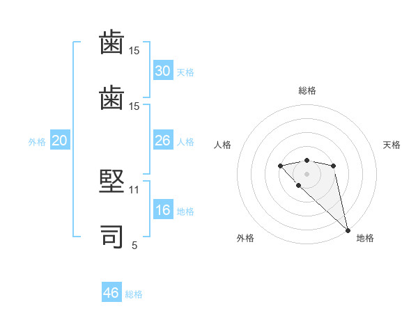歯歯 堅司さんを姓名の画数から五運を鑑定