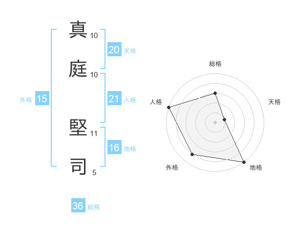 真庭 堅司さんの天格は20画の1点!