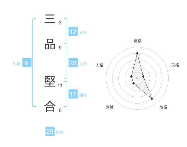 三品 堅合さんの総格は29画の4点!