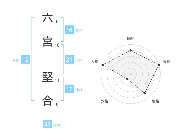 六宮 堅合さんの総格は33画の4点!