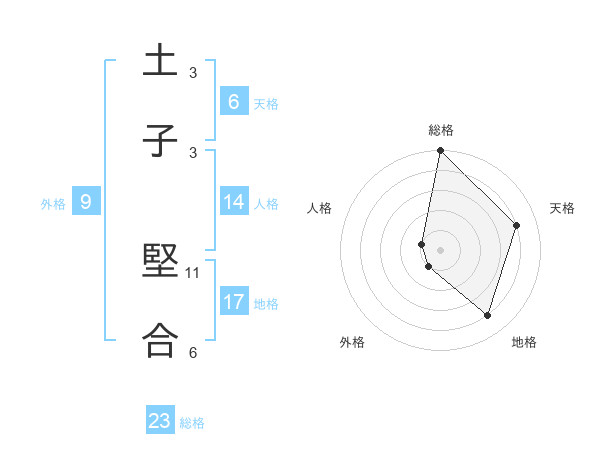 土子 堅合さんの総格は23画の5点!