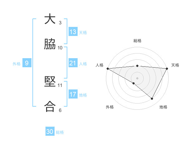 大脇 堅合さんを姓名の画数から五運を鑑定