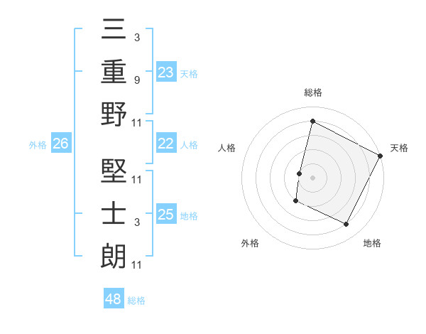 三重野 堅士朗さんを姓名の画数から五運を鑑定