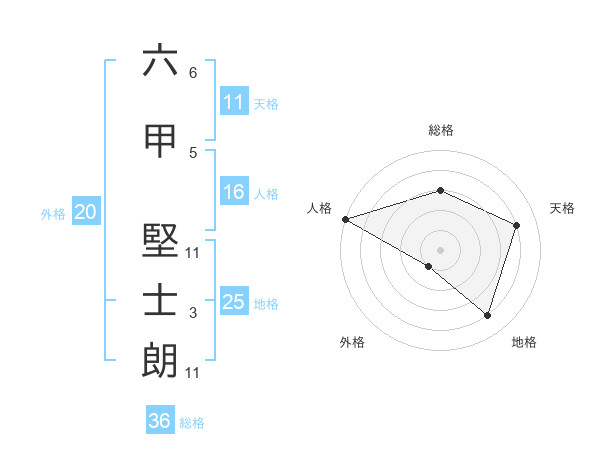 六甲 堅士朗さんの総格は36画の3点!