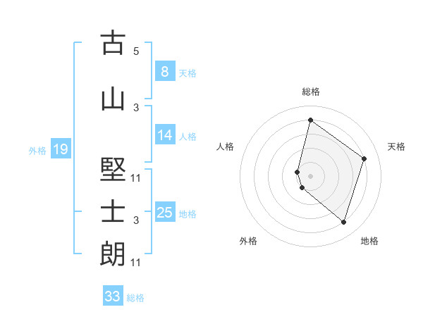 古山 堅士朗さんの総格は33画の4点!