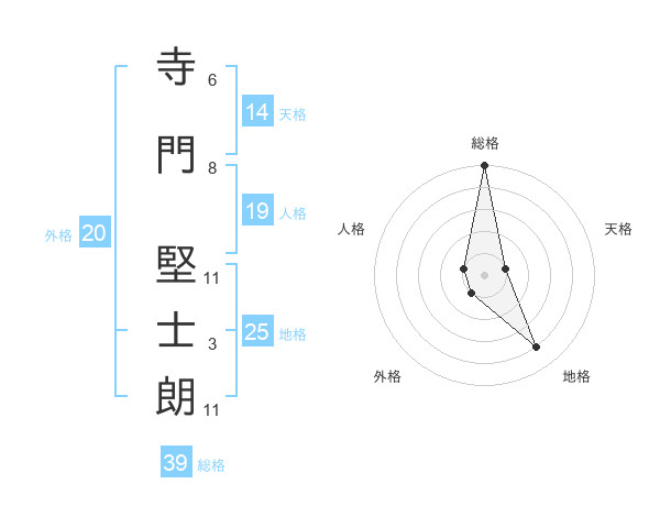 寺門 堅士朗さんを姓名の画数から五運を鑑定