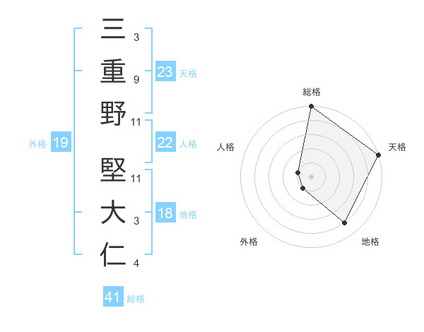 三重野 堅大仁さんを姓名の画数から五運を鑑定