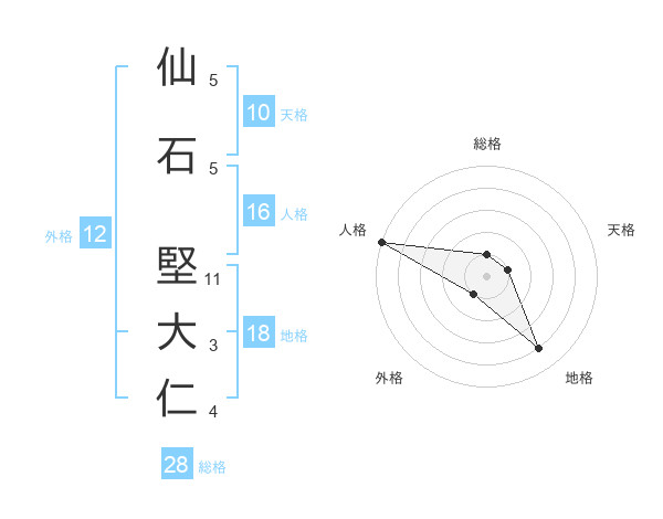 仙石 堅大仁さんの人格は16画の5点!