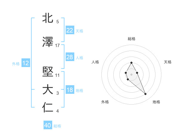 北澤 堅大仁さんを姓名の画数から五運を鑑定