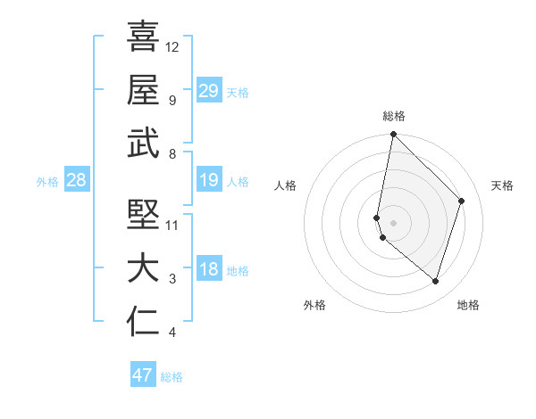 喜屋武 堅大仁さんを姓名の画数から五運を鑑定
