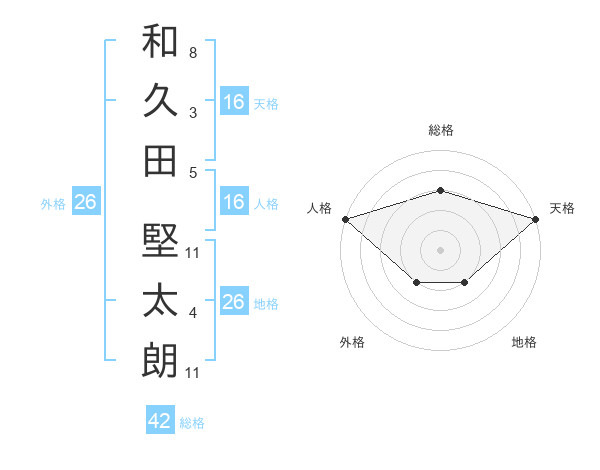 和久田 堅太朗さんを姓名の画数から五運を鑑定