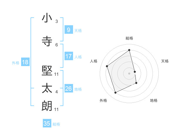 小寺 堅太朗さんの総格は35画の4点!
