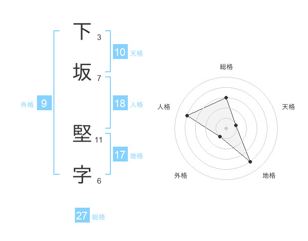 下坂 堅字さんの総格は27画の3点!