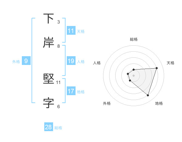 下岸 堅字さんの総格は28画の1点!