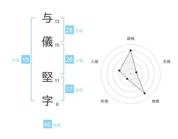 与儀 堅字さんを姓名の画数から五運を鑑定
