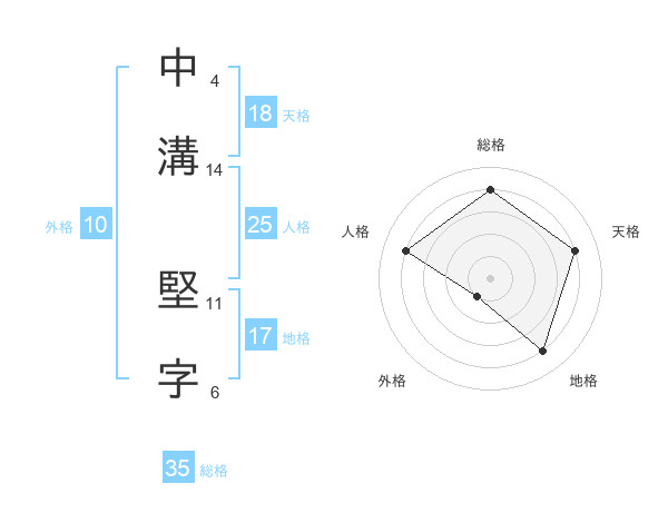 中溝 堅字さんを姓名の画数から五運を鑑定