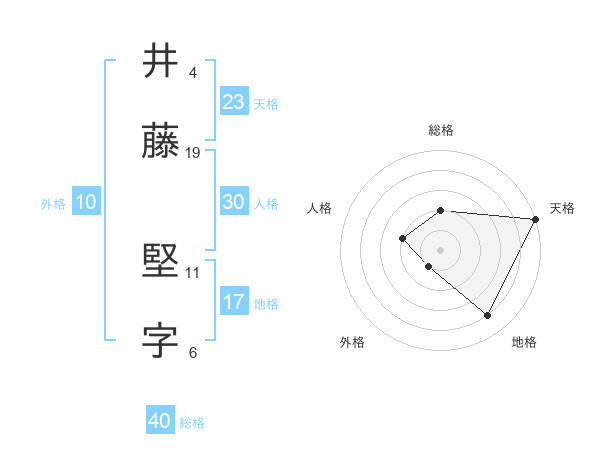 井藤 堅字さんの総格は40画の2点!