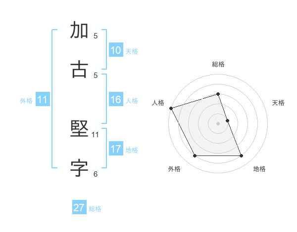 加古 堅字さんの外格は11画の4点!