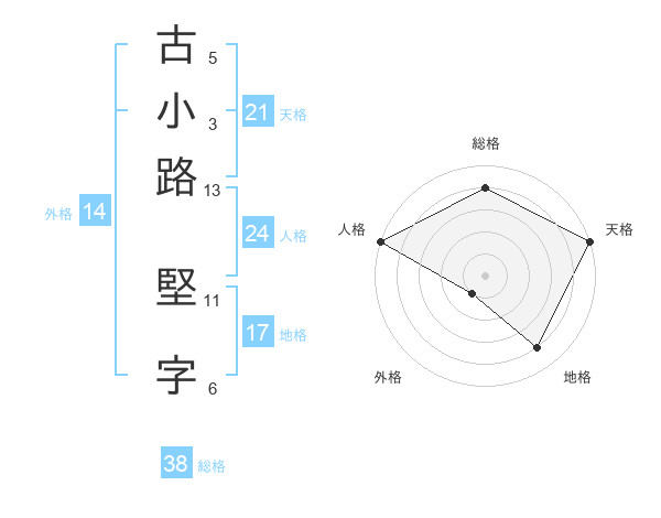 古小路 堅字さんの総格は38画の4点!