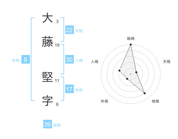 大藤 堅字さんの総格は39画の5点!