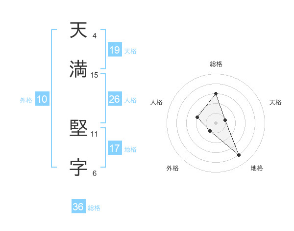 天満 堅字さんの天格は19画の1点!