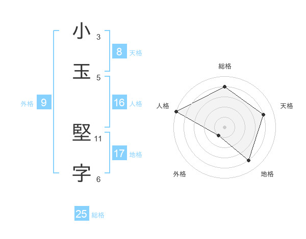 小玉 堅字さんを姓名の画数から五運を鑑定